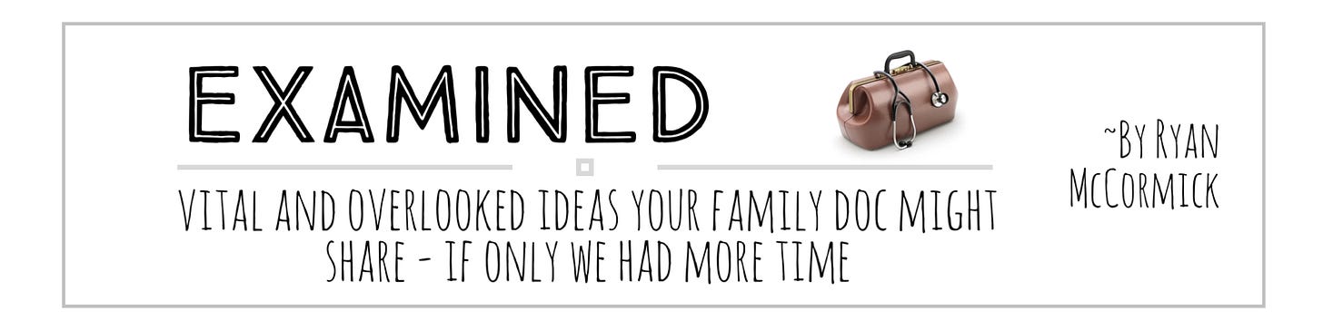 Welcome to a unique publication about health and science from a primary care doc’s perspective. I’m Ryan McCormick, a physician in practice for two decades. Here I pause the clock to present articles, essays, and guidance about vital medical topics that deserve more time for consideration. What you read here is crafted to be helpful.